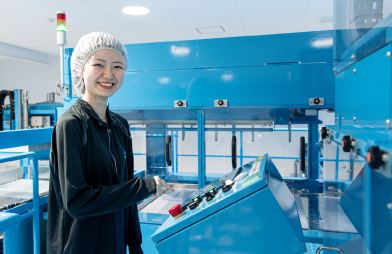 岡山工場のコンセプトは「日本一いい会社」。「これまでの工場のイメージを壊したい」と土日は完全に休み。年間休日も有給を合わせると、おそらく日本トップクラスのおよそ150日が休日です。延々と単調な検品をするようなこともなく、自動化の進んだ工場内で「管理や監視」がおもな仕事になります。場所によっては音楽を聴きながらも。